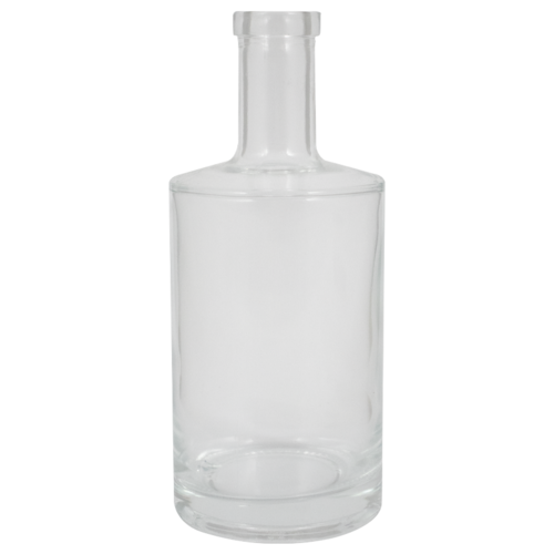 The Jersey spirit bottle features a thick glass base, flat shoulders, and bar top finish. Perfect for whiskey, gin, vodka, and other spirits. A robust bottle with sharp lines that offers a distinguished appearance on the shelf for any spirit you fill it with.