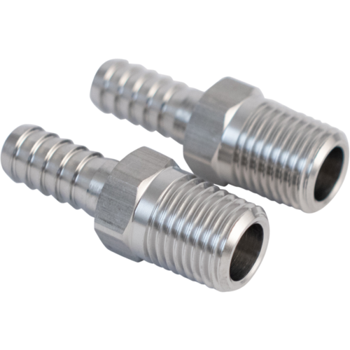 Stainless steel barb adapter for 1/4" femaile pipe thread connections. For use with 1/4" or 5/16" ID tubing.